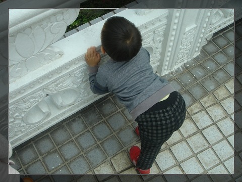 哈哈~ 可能是因為很多人分享天元宮的關係,感覺那裡現在已經變成一個超熱門的景點啦!!XD (我今天本來還異想天開的要去說~還好後來因為擠不出時間沒去啊!><") 外甥翹屁屁的動作七先生也超愛做的ㄟ!! 好可愛哦!!!^O^